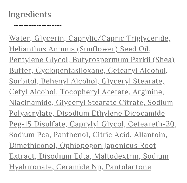 Colloidal oatmeal 1%, glycerin, shea butter, panthenol, ceramides
